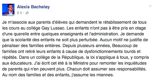 Le député socialiste de Colombes, Alexis Bachelay, a pris fermement position, ce mardi, contre ce mouvement de grève via sa page Facebook :