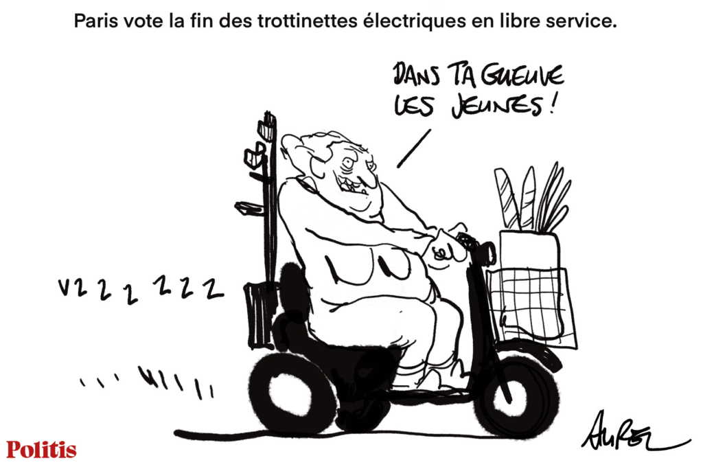 Le dessin d’Aurel : Borne sur la sellette et la fin des trottinettes