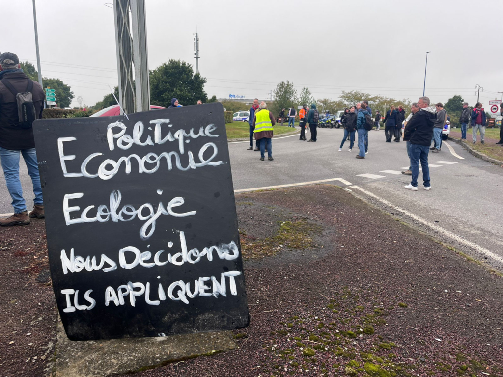 À Flers, dans l’Orne, le rendez-vous était donné sur le parking du Décathlon, dans la zone commerciale, à l’entrée de la ville où s’est rendue notre journaliste Vanina Delmas. L’idée était de s’organiser pour la suite. Après 20 minutes de discussions, l’idée émerge d’aller sur le rond-point le plus proche pour distribuer des tracts aux automobilistes et les inciter à rejoindre le mouvement. « Mais on nous a dit que si on bloquait la route, les forces de l’ordre feraient usage de la force », glisse Florian*. La cinquantaine de personnes se déploie sur le rond-point et opte pour le barrage filtrant. Deux jeunes s’arrêtent avant de repartir travailler. « Promis, je n’achète rien aujourd’hui ! », déclare l’une d’elles. Beaucoup de routiers klaxonnent en soutien.