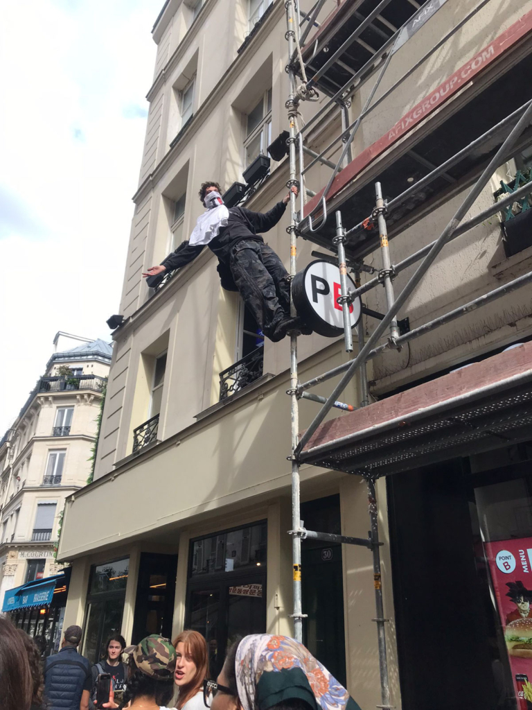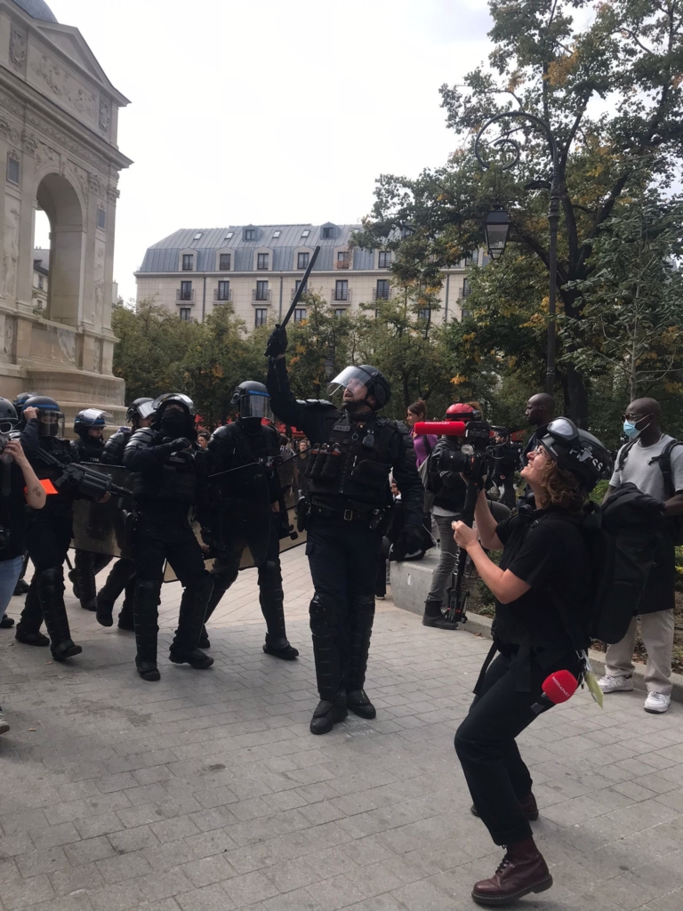 À côté de lui, Chloé*, 15 ans, en seconde elle aussi. « Ça nous concerne tous ce qui se passe », déclare-t-elle. Au micro Théo*, étudiant aux Grands Moulins (Université Paris Cité), les félicite : « Bravo les jeunes pour votre mobilisation ! » Il a eu des échos de la répression : « On a appris qu’il y avait eu au moins 65 interpellations alors qu’il est que 8 h 35. Si après ça on dit que la France est encore un État de droit, on se trompe. La répression policière est partout. On applaudit ceux qui ont été arrêtés par la police. » Tous applaudissent.