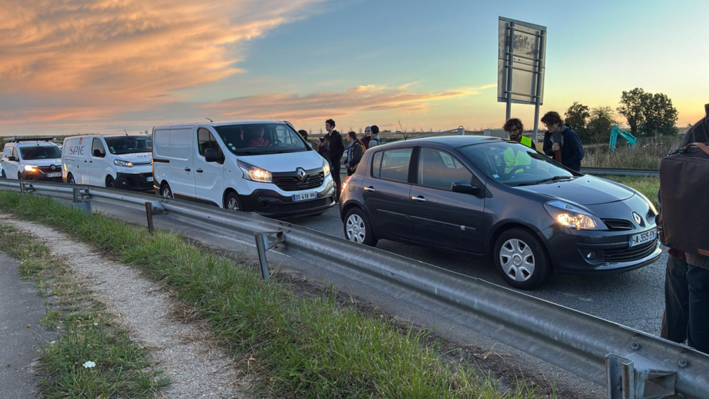 Le long de la N118, près d’Orsay, notre journaliste, Pierre Jequier-Zalc couvre un tractage réalisé par une trentaine de personnes. « Que pensez-vous du gouvernement ? », demande un jeune participant. « Pas beaucoup de bien », cingle un conducteur, avant de partir. Là-aussi, la présence policière est importante.