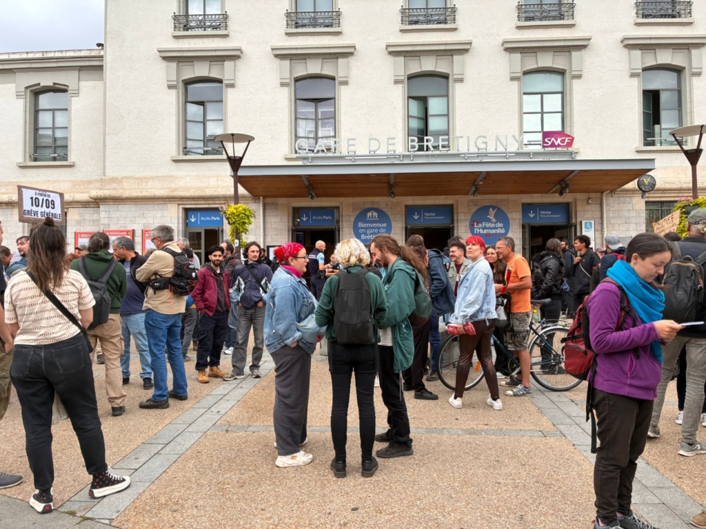 Devant la préfecture, Matthieu Trenel est venu représenter les travailleurs de l’énergie, en grève reconductible depuis le 2 septembre pour une revalorisation de 9 % de leur grille salariale. « Il y a du monde aujourd’hui mais on peut encore faire mieux », confie-t-il. Le cégétiste distribue des tracts appelant à la mobilisation interprofessionnelle le 18 septembre prochain. « On le sent, ça va prendre », assure celui qui reste aussi concentré sur la lutte dans son entreprise. « Nos employeurs nous ont envoyé un courrier pour qu’on se mette autour de la table pour négocier. C’est déjà une avancée. » Le rassemblement s’élance, direction le siège du Medef Essonne. « Le trajet est pensé pour interpeller le préfet, représentant de l’État, et le patronat », glisse un participant.