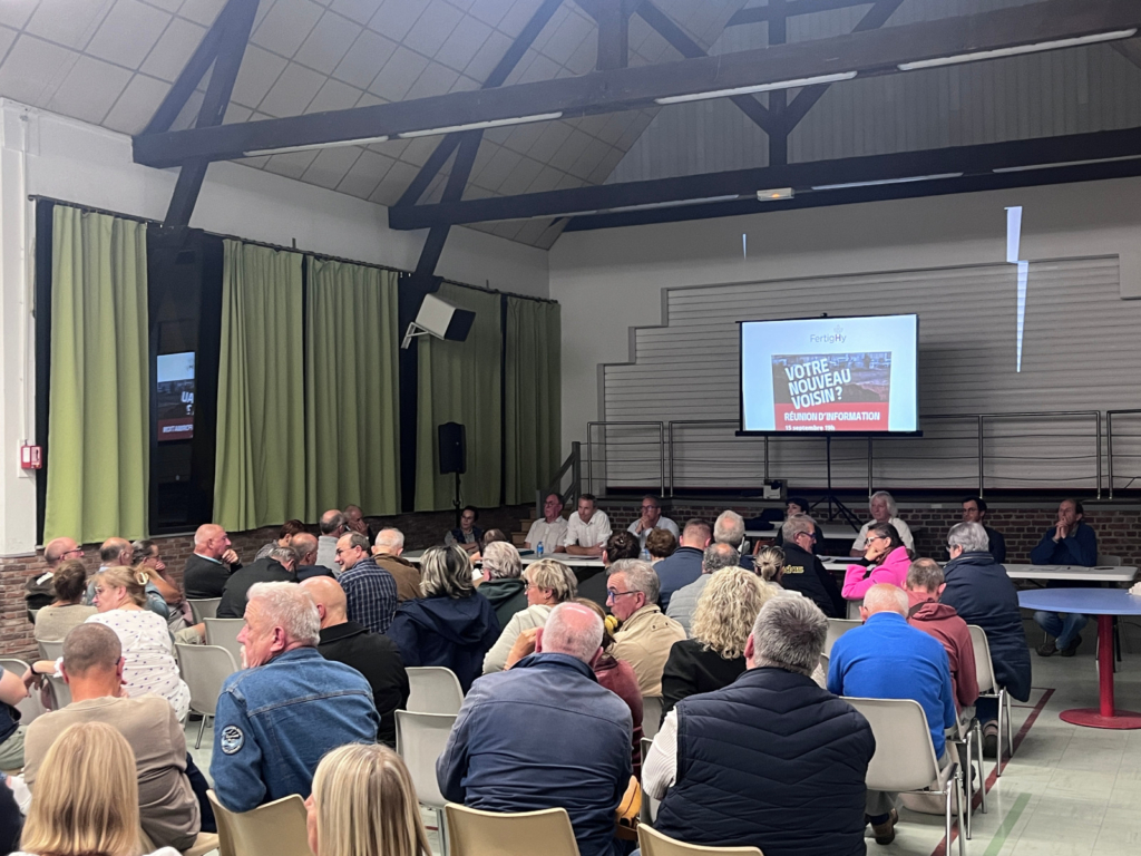 Lors de la première réunion publique organisée mi-septembre, les sources d’inquiétude ont été exposées au grand jour : d’abord, les risques technologiques d’un site Seveso seuil haut, à quelques mètres des maisons, puis les impacts sur les ressources en eau, notamment pour les agriculteurs. Le procédé de fabrication d’hydrogène par électrolyse de l’eau consiste à scinder les molécules d’eau (H2O) avec de l’électricité, pour isoler l’atome d’hydrogène. Il est donc très gourmand en eau notamment au moment du refroidissement.