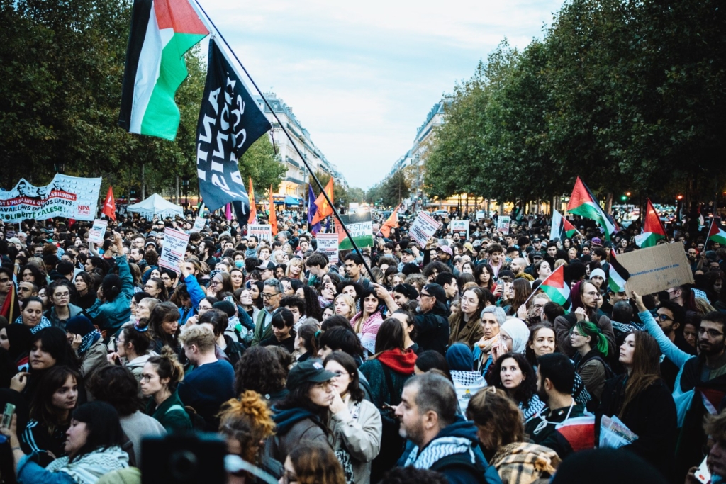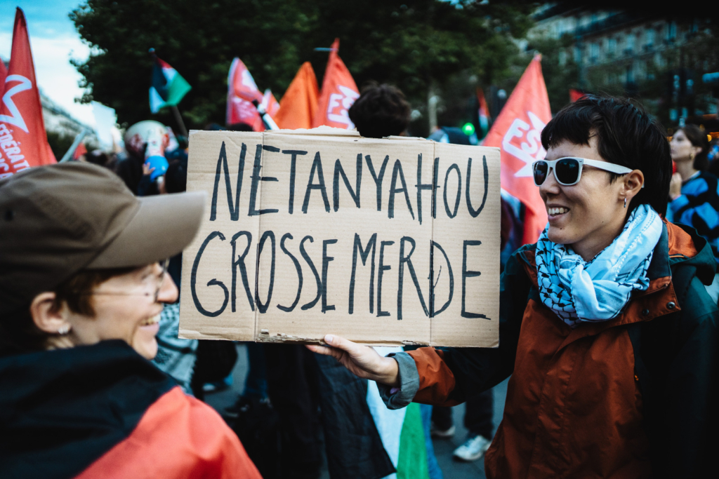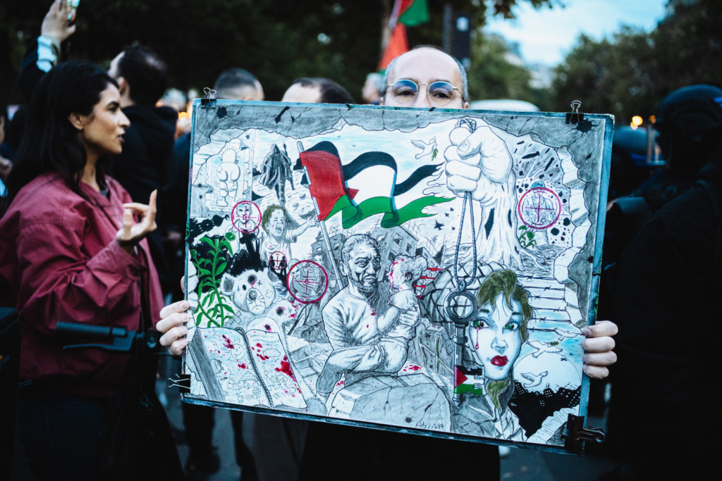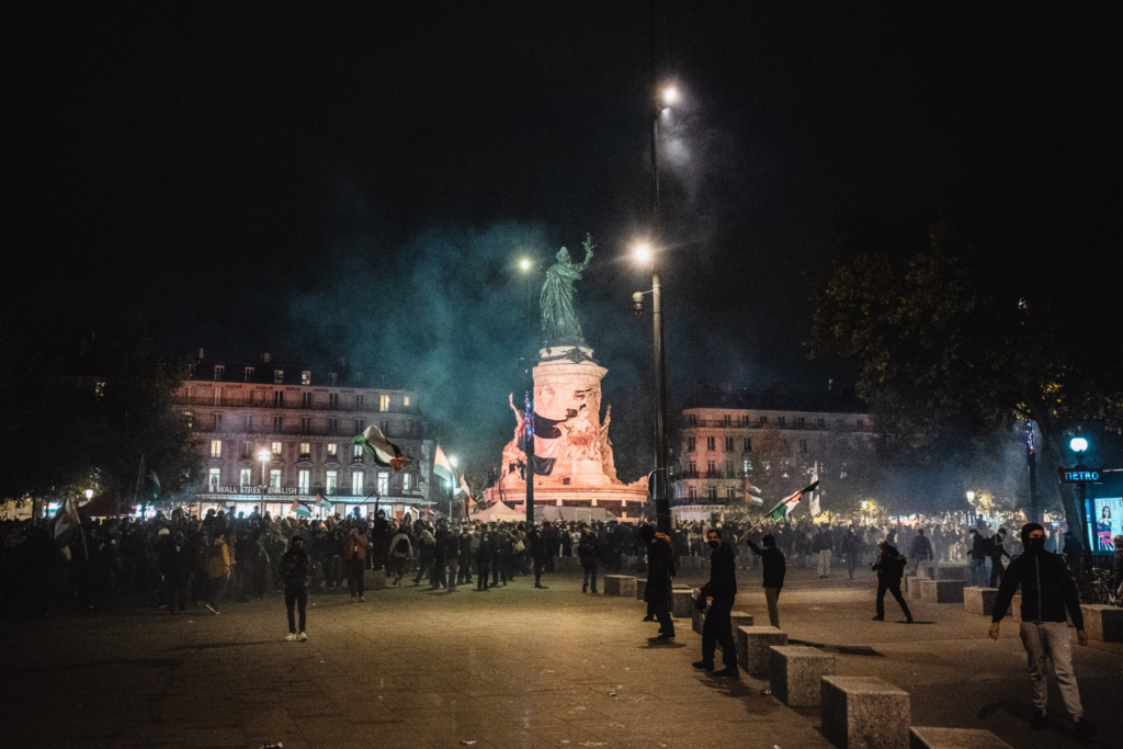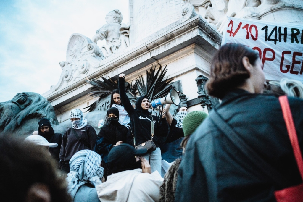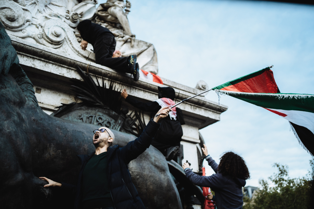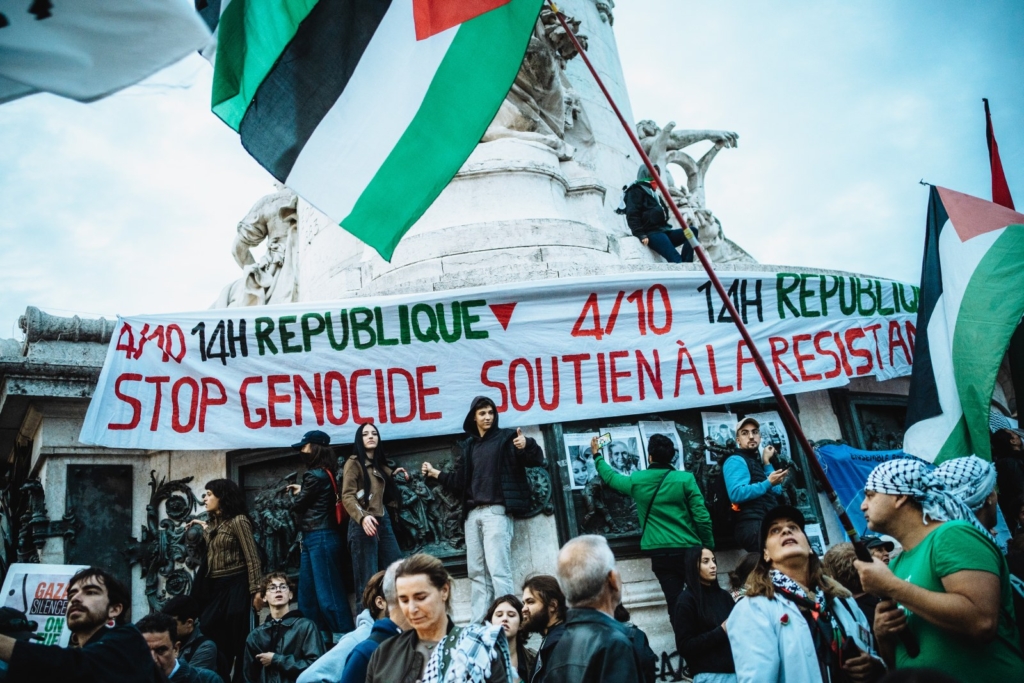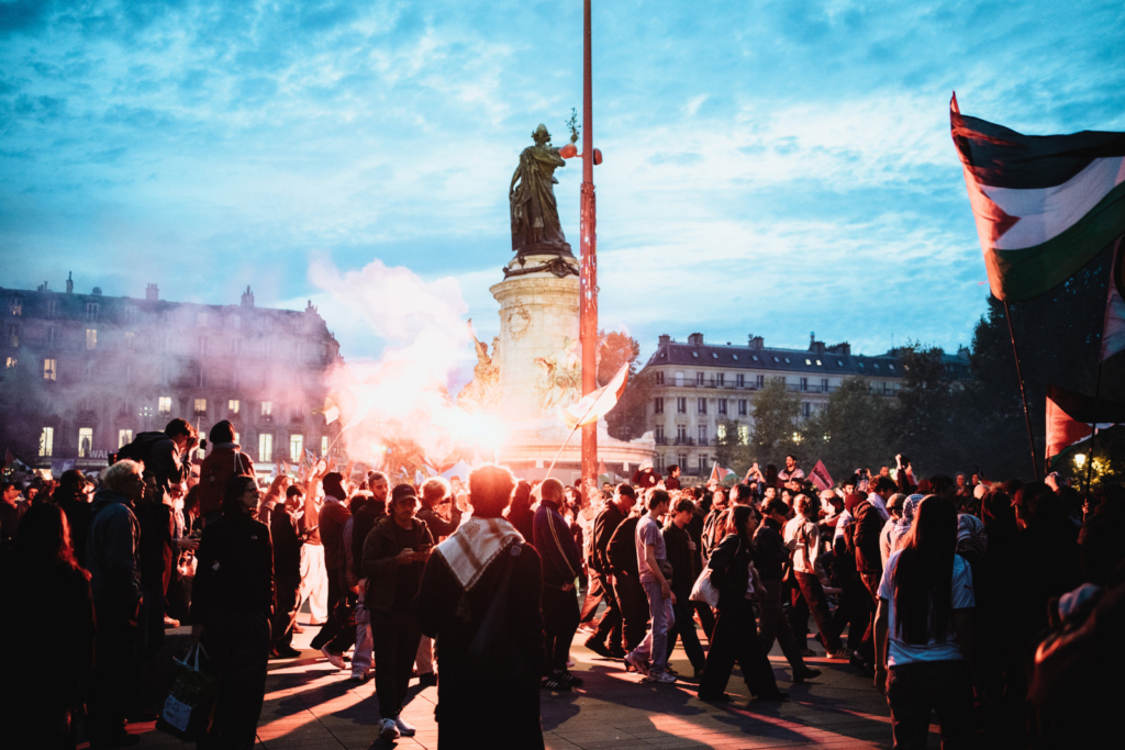 Plusieurs centaines de personnes se sont réunies, place de la République, en soutien à la Global Sumud Flotilla, arrêtée par Israël à quelques kilomètres de Gaza.