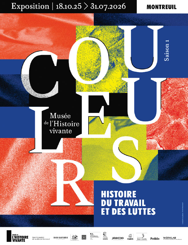 Vêtements de travail et de lutte, drapeaux et autres objets militants, affiches, peintures, photographies, films… À travers des pièces diverses, le musée explore, avec « Couleurs. Histoire du travail et des luttes », le monde des couleurs portées au travail et celles revendiquées dans la rue : du rouge et noir historiques du mouvement ouvrier jusqu’aux nouvelles couleurs ayant émergées ces dernières décennies. L’exposition multiplie les échelles (nationale, internationale, locale) afin de mieux comprendre les liens entre territoires, individus, groupes sociaux et organisations politiques et syndicales.