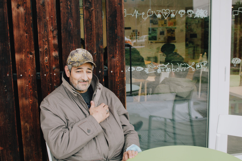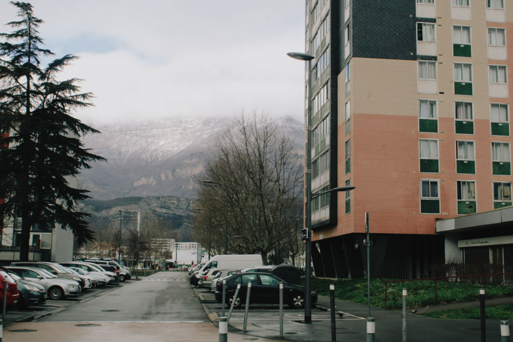 Nourredine est assis devant la façade en bois du Village 2 santé, un centre de soin communautaire, au milieu des tours. L’homme tient son café de la main droite, dont le pouce est tordu. L’horizon est bordé de montagnes. Nous sommes dans un quartier populaire du sud d’Échirolles, le Village 2, en périphérie de Grenoble. L’agent de sécurité s’est blessé en tentant d’attraper un homme. Malgré trois opérations, il n’a pas récupéré l’usage de son doigt. Après l’accident, il a demandé à son patron de le laisser travailler et a vite repris son poste. « J’ai une famille à nourrir », lui a-t-il dit.