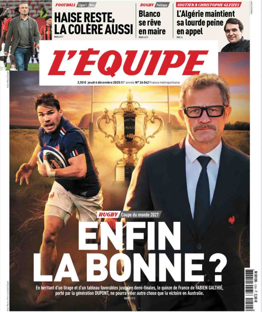 La rédaction de L’Équipe connaît actuellement d’importantes turbulences : mi-novembre, une motion de défiance a été votée à l’encontre du directeur des rédactions, arrivé en janvier. Des postes de journalistes risquent d’être supprimés. Mais même en ayant conscience de la crise que connaît le journal, on ne peut que s’étonner du peu de cas fait par le quotidien au sort de Christophe Gleizes, journaliste spécialisé dans le football. La une du 4 décembre, lendemain de sa condamnation en appel, concernait la Coupe du monde de rugby de 2027, soit un événement qui aura lieu dans… deux ans.