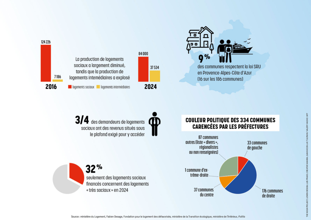 Depuis 2017, la Macronie a méthodiquement fragilisé le modèle du logement social. Baisse des APL, ponction sur les bailleurs sociaux et remise en cause de leur autonomie financière, obsession de la vente des HLM, etc. : tout concourt à affaiblir ce pilier de la solidarité nationale. Bilan : chute de la production, renchérissement du foncier, temps d’attente interminables, paupérisation des locataires…Mais l’offensive n’est pas seulement étatique. Elle est aussi locale. De très nombreuses communes, en premier lieu leurs maires, persistent aujourd’hui à refuser d’appliquer la loi SRU. Ces maires hors-la-loi préfèrent payer des amendes plutôt que de construire des logements sociaux, organisant sciemment la pénurie.